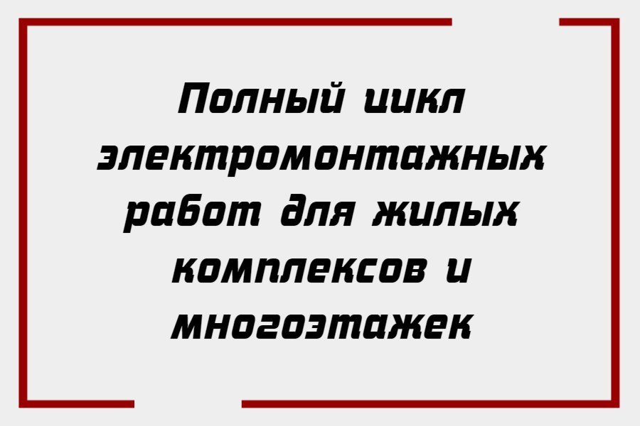 Наша компания предлагает услуги по электромонтажу для жилых комплексов, многоэтажек и коттеджных посёлков. Мы работаем с проектами любого масштаба, предоставляя полный цикл услуг — от проектирования до монтажа и ввода в эксплуатацию. Мы знаем, как важно обеспечить стабильную и надёжную работу электрических систем в многоквартирных домах, и гарантируем качество на всех этапах работы.