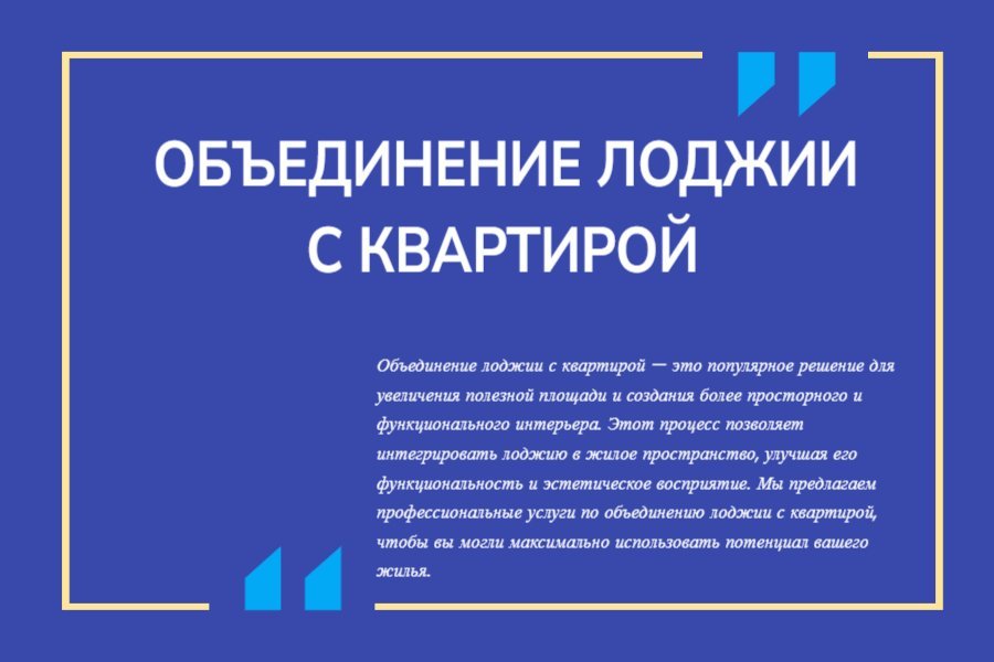 - Планирование и проектирование: Мы начнем с бесплатной консультации и оценки вашего проекта. Наши специалисты помогут разработать проект объединения лоджии, учитывая ваши пожелания, особенности квартиры и строительные нормы.